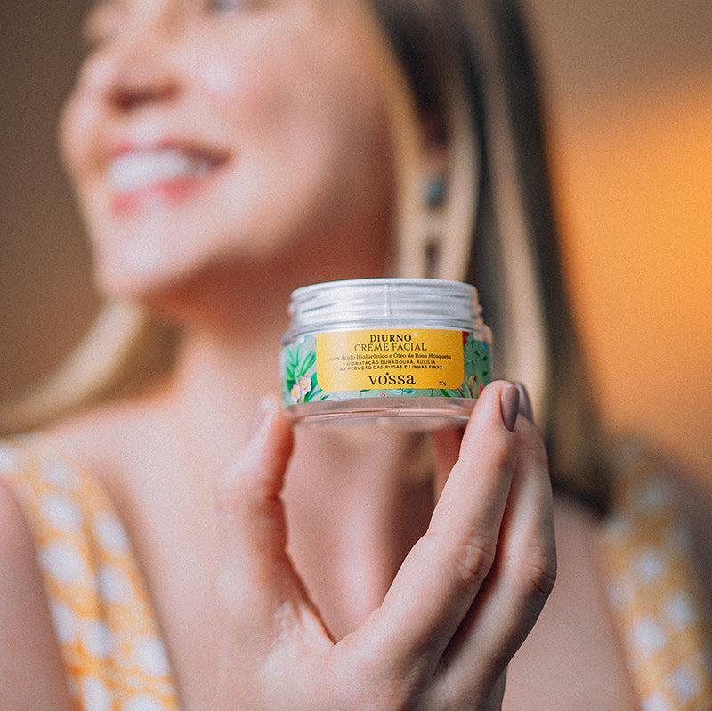 Modo de uso: Após limpar a pele pela manhã com seu sabonete facial Vossa, aplique uma quantidade adequada do creme diurno em movimentos suaves, massageando delicadamente até completa absorção.